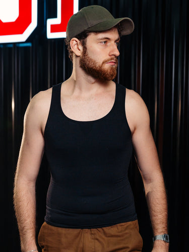 The tank is true to size — just order your regular T-shirt size for a comfortable, sculpting fit.